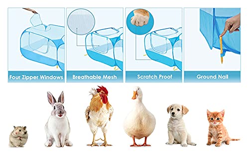 Ademend en transparant — Er zijn transparante netten rond het kippenhuis, dus huisdieren kunnen het duidelijk zien en zien. Het ademend mesh-weefsel van de box kan ze beschermen tegen vervelende beestjes en zorgen voor de ventilatie van de dierlijke pen en elimineert geuren. Dit is een comfortabele en veilige plek waar huisdieren kunnen spelen.